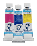 - La gama de acuarela Van Gogh consta de 72 colores en tubos de 0.3 fl oz y en medias sartenes.