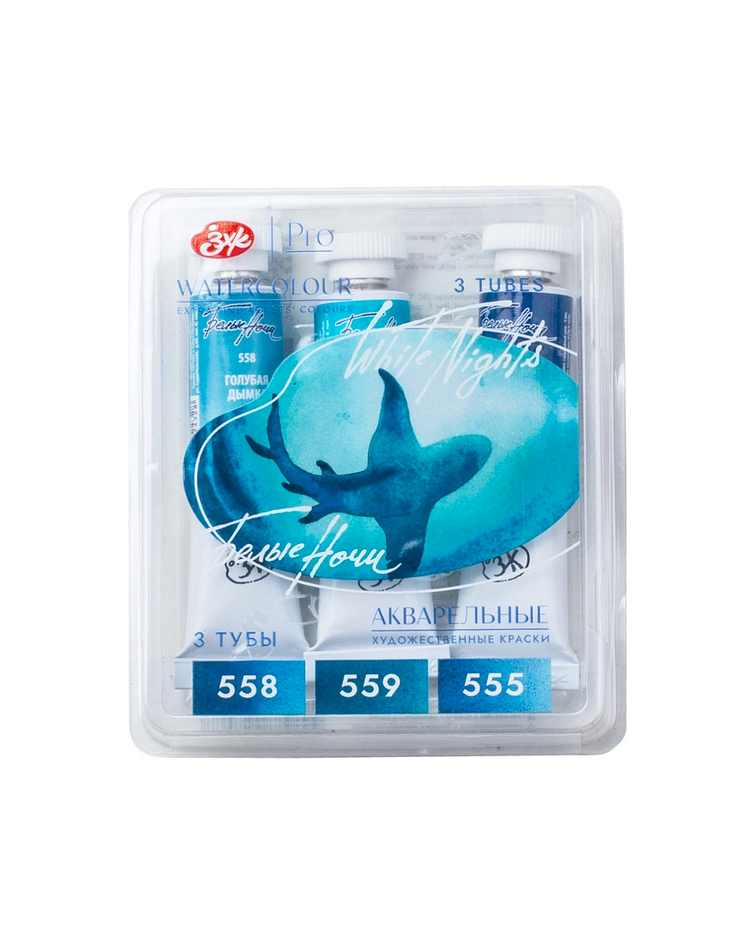 Set de 3 colores extra finos de acuarelas para artistas, en tubos de 10 ml.