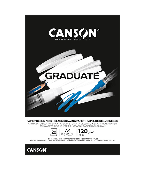 Los blocs Canson Graduate Dessin ofrecen un papel de dibujo blanco, resistente y de grano ligero. Su superficie resiste al borrado repetido sin llegar a raspar. ¡Estos blocs están compuestos por 30 hojas y son ideales para dibujar y obtener una creación con colores vibrantes!
