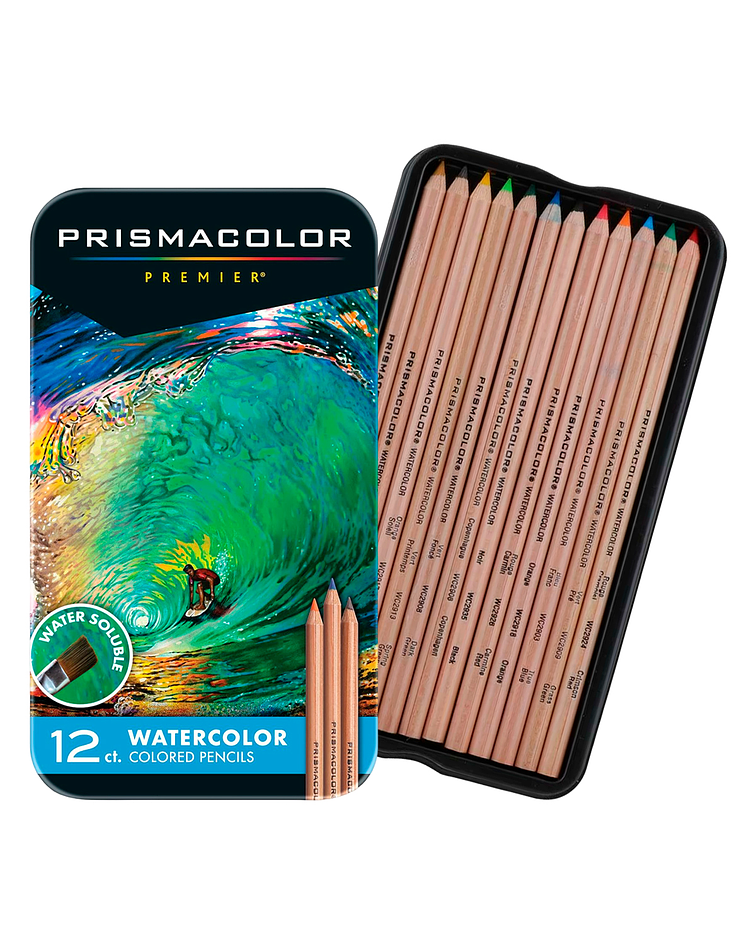 Crea efectos brillantes y translúcidos con los lápices de colores solubles en agua Prismacolor Premier. Recibirás 12 lápices de colores acuarelables con núcleos de solubilidad incomparable que se pueden combinar con un pincel para empapar tus bocetos en superficies vidriosas y texturas de ensueño. Los lápices para colorear Prismacolor tienen pigmentos de alta calidad que se pueden usar en seco para combinar con la paleta Prismacolor. Ahora puedes realizar una transición perfecta entre líquidos realistas y detalles precisos.