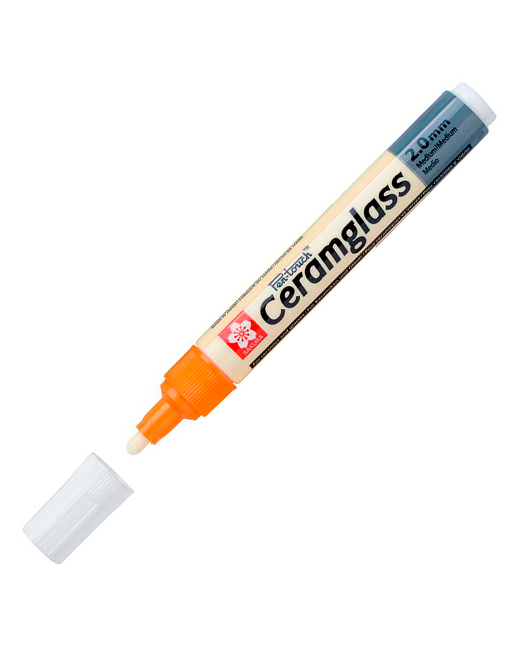 Los plumones Ceramglass son los únicos marcadores que te permiten pintar directamente sobre superficies de loza, cerámica o vidrio, sin necesidad de fijar la pintura usando un horno. El secado total de la pintura ocurre a temperatura ambiente en unas 12 horas. Durante ese período, es posible corregir errores simplemente usando un cotonito untado en alcohol o un paño de algodón.