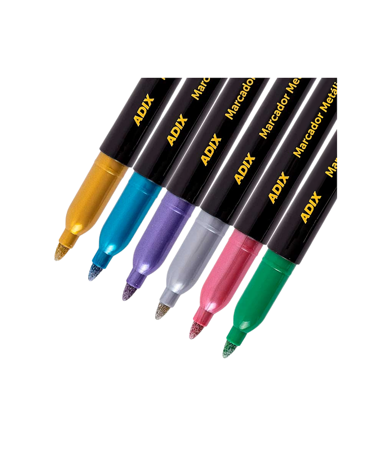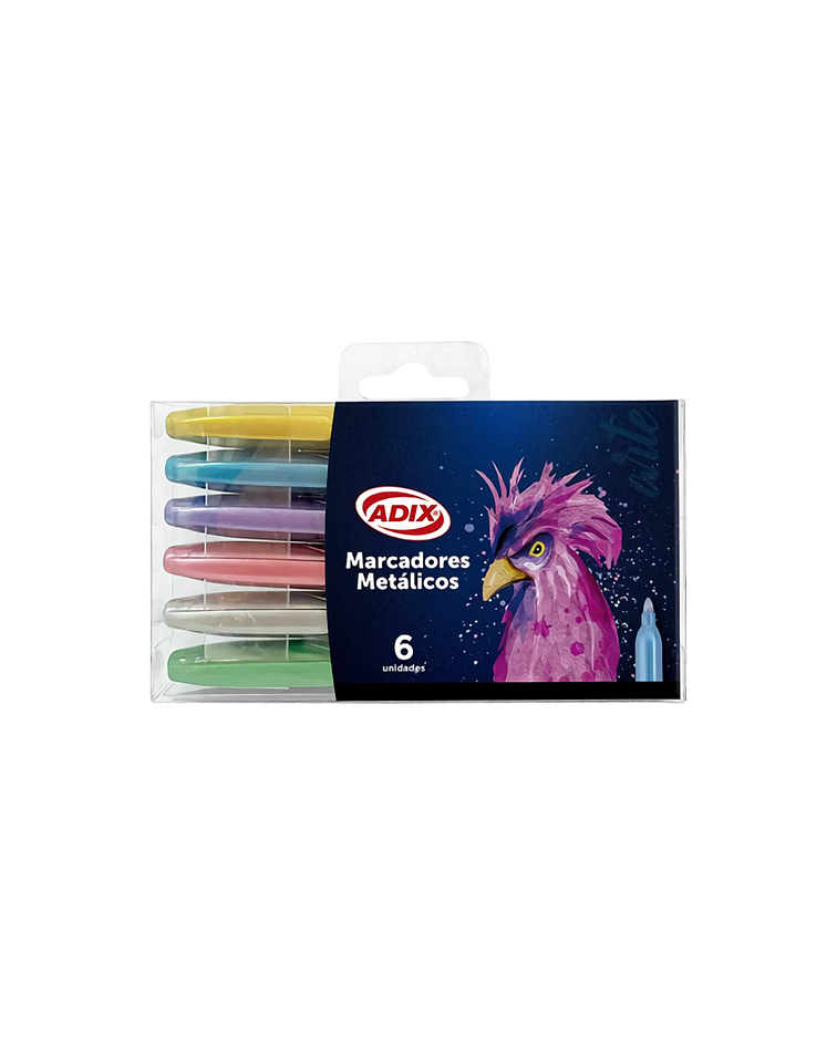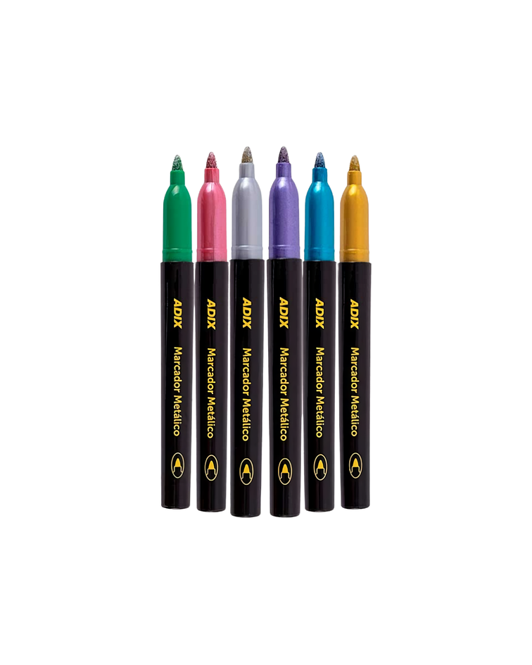 Set de marcadores metálicos punta fina. 6 unidadesCuerpo redondo Usar solo para escribir o dibujarProducto en base de agua
