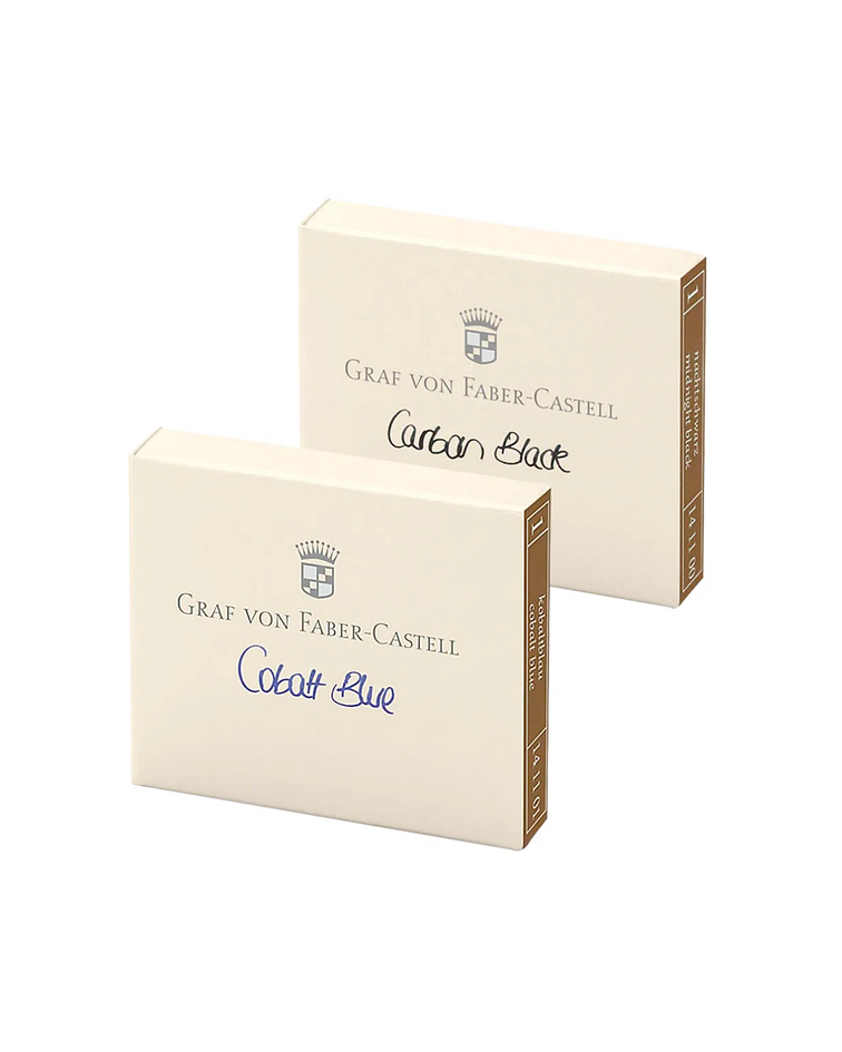 Los cartuchos Graf von Faber-Castell son cartuchos estándar, lo que permite su utilización en plumas estilográficas Graf von Faber-Castell y en todas aquellas marcas compatibles con este sistema de cartuchos. Realizados con los máximos estándares de calidad, posibilitan una carga rápida y limpia con sus cartuchos de diferentes colores o bien el llenado a través del tintero mediante convertidores.
