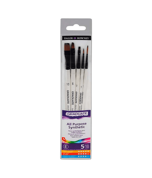 Los pinceles Daler-Rowney Graduate están diseñados para satisfacer perfectamente las necesidades de estudiantes y artistas profesionales y aficionados con una excelente relación calidad-precio. Los pinceles de la línea Graduate se pueden utilizar para técnicas con pinturas al óleo, acrílicas y acuarelas.