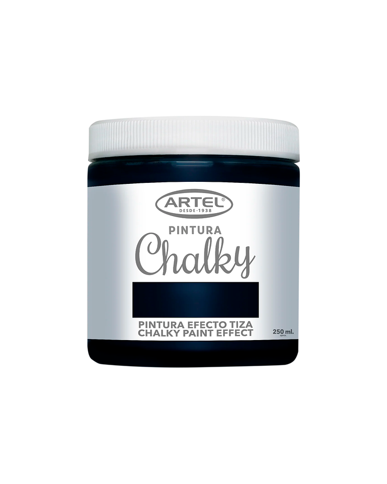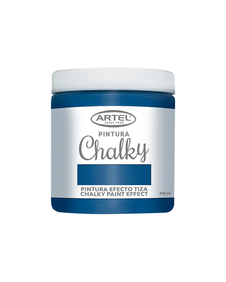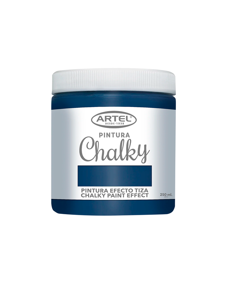 Pintura a base de agua sin acrílicos. Acabado mate que crea un alusivo efecto tiza. Alto poder cubritivo y de adhesión. No requiere lijado. Ideal para diversas superficies como madera, vidrio, metal, entre otras.