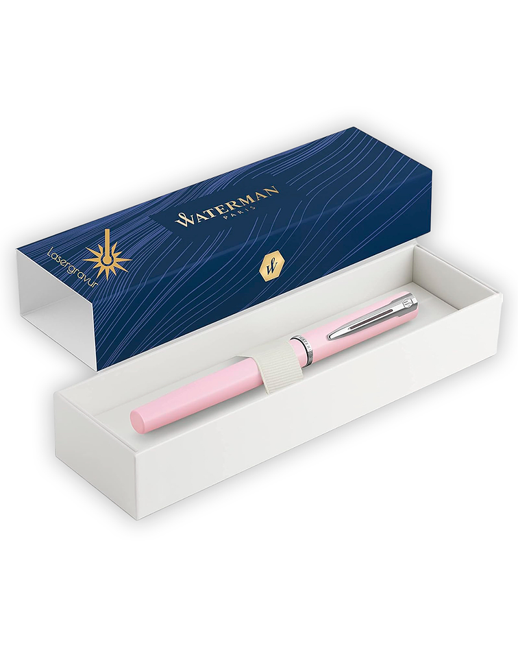 La pluma estilográfica Waterman Allure tiene un diseño contemporáneo y elegante que es perfecto para estudiantes y profesionales. El plumín grabado duradero y la tinta de flujo suave garantizan una experiencia de escritura consistente y personalizada.