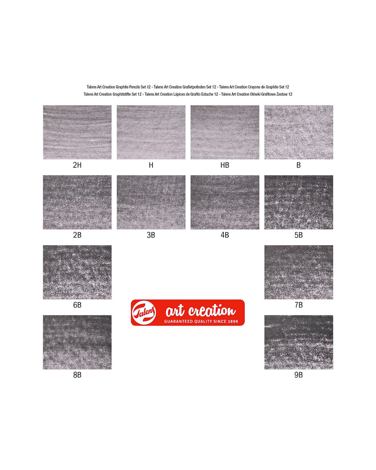 Contenido: 12 lápices (2H – H – HB – B – 2B – 3B – 4B – 5B – 6B – 7B – 8B – 9B)