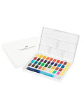 Faber-Castell ofrece tres juegos de iniciación a la acuarela ideales para principiantes y aficionados. Cada juego incluye pastillas de acuarela, un pincel con depósito de agua y una paleta extraíble para mezclar colores. Estas acuarelas altamente pigmentadas permiten realizar todas las técnicas de acuarela convencionales. El pincel con depósito de agua que va incluido es el compañero perfecto para pintar al aire libre o fuera de casa. Los colores brillantes y luminosos, incluidos los colores metálicos y neón, inspiran a los usuarios y les ayudan a expresar y disfrutar de su propia creatividad.