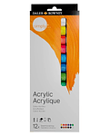 Este Daler Rowney Simply Acrylic Set contiene 12 colores, cada uno contiene 12 ml de pintura acrílica y es ideal para un principiante. Estos acrílicos son colores asequibles que se pueden usar para pintar en todas las superficies de arte convencionales, como papel, cartón, lonas, etc.