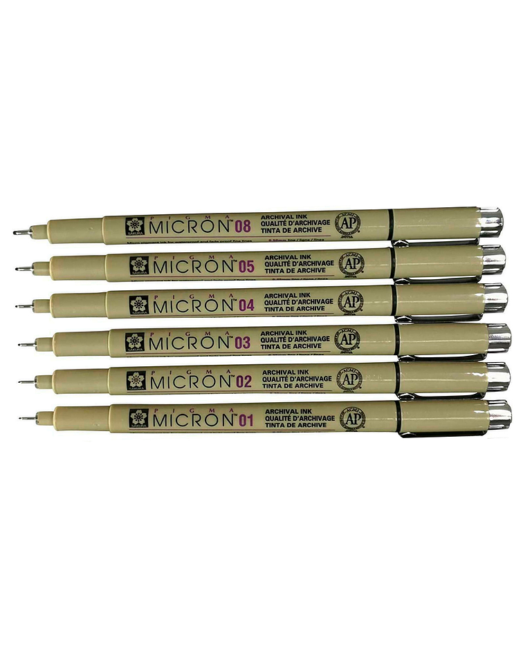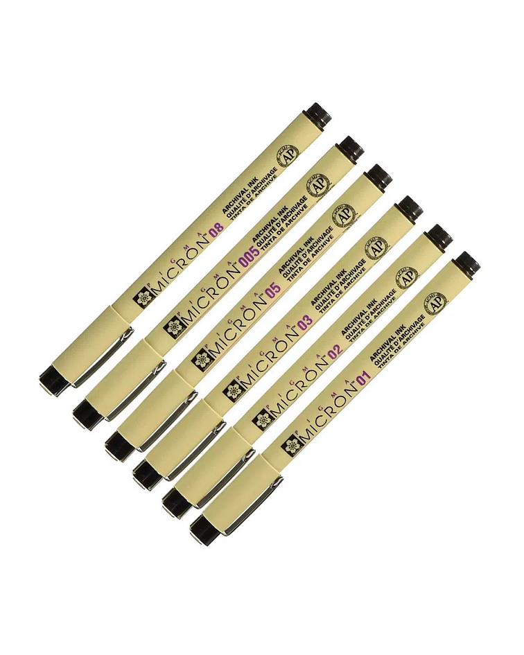 Micron, para valorizar contornos, sombras o distintos elementos. Trae 6