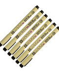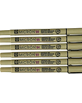 El set cuenta con 6 grosores diferentes de Pigma Micron, para valorizar contornos, sombras o distintos elementos. Trae 6 distintos grosores: 0.1 - 0.2 - 0.3 - 0.4 - 05 - 0.8