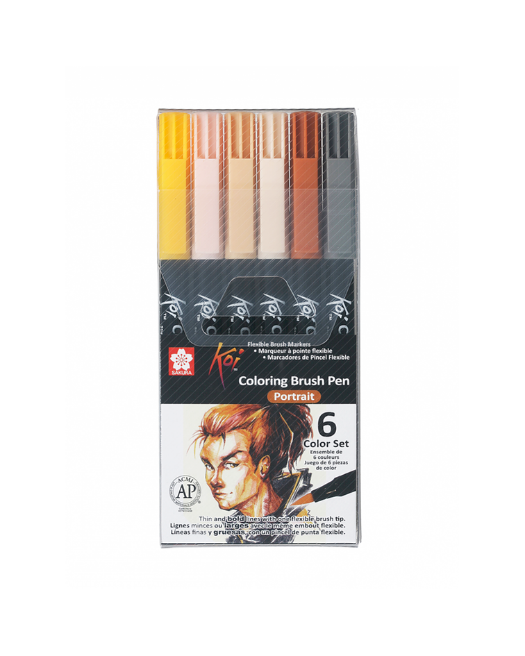 Set de 6 Plumones Punta Pincel Colores Retrato con tinta en base al agua Koi de Sakura.
